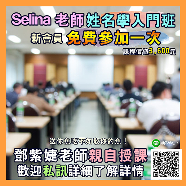 #Selina鄧紫婕 #姓名學 #入門班 #免費參加 #新會員 #親自授課 #北中南