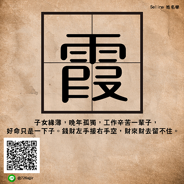 姓名學就是中國文字學,名字產生萬有引力,影響自己和家人一生的行運。女人名字有「霞」的,不但自己一生的命運不能順遂,更會影響身邊男人的事業和運氣,一起變成黃昏的夕陽,豈能不謹慎!