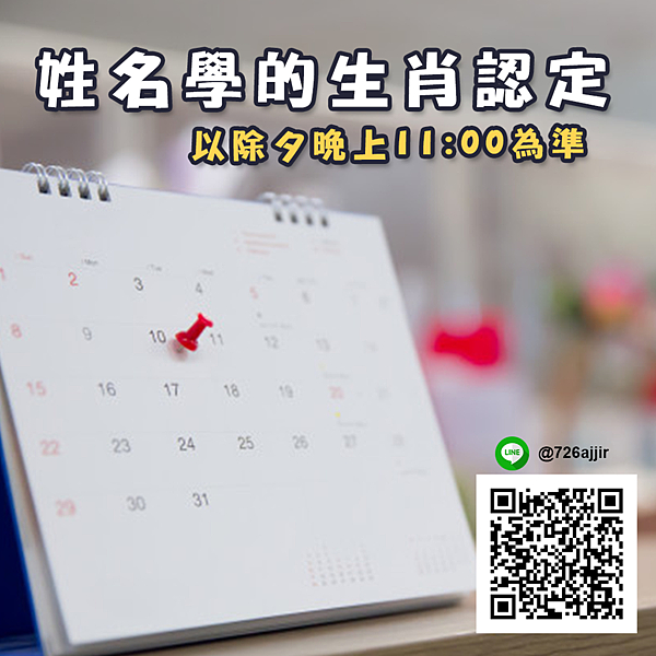 姓名學生肖的認定以除夕晚上11:00為準!不同於八字的生肖認定是以「立春」為主。