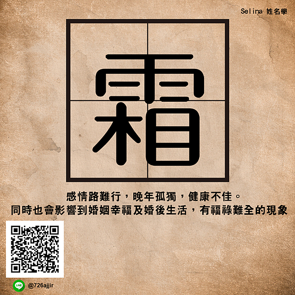 #女人命名禁用~「霜」 影響到婚姻幸福及婚後生活,有福祿難全的現象